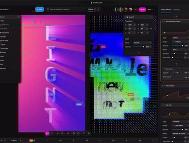 An intuitive, all-in-one interface that feels familiar to Figma or Photoshop designers, with rapid vector animations