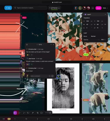 Modyfi offers users real time collaboration, letting multiple designers work on projects at the same time. Designers can leave feedback and share their process within the app. Everything can be done within the browser.